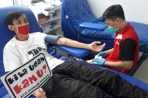 Seorang warga secara sukarela mendonorkan darahnya (Foto:Kompas)